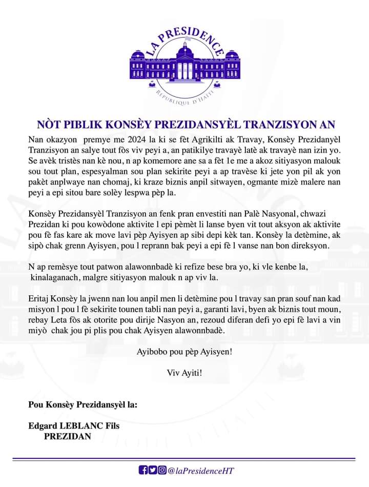 COMMUNIQUÉ DE PRESSE 1er MAI 2024 1 mai 2024 par Bureau de Communication de la Présidence Communiqués de presse Prochain Post COMMUNIQUÉ DE PRESSE DU 03 MAI 2024
